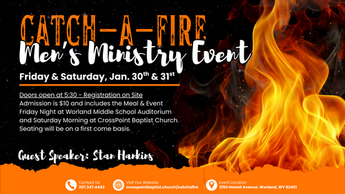 Guy's: Free admission into the Men's Catch-A-Fire dinner, worship and discipleship event.