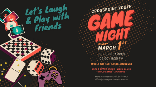 Join fellow students for an evening of fun, laughter and prizes as we compete in different games around our Big Horn Campus creating memories and getting to know one another a little better. Dessert/snacks will be provided!